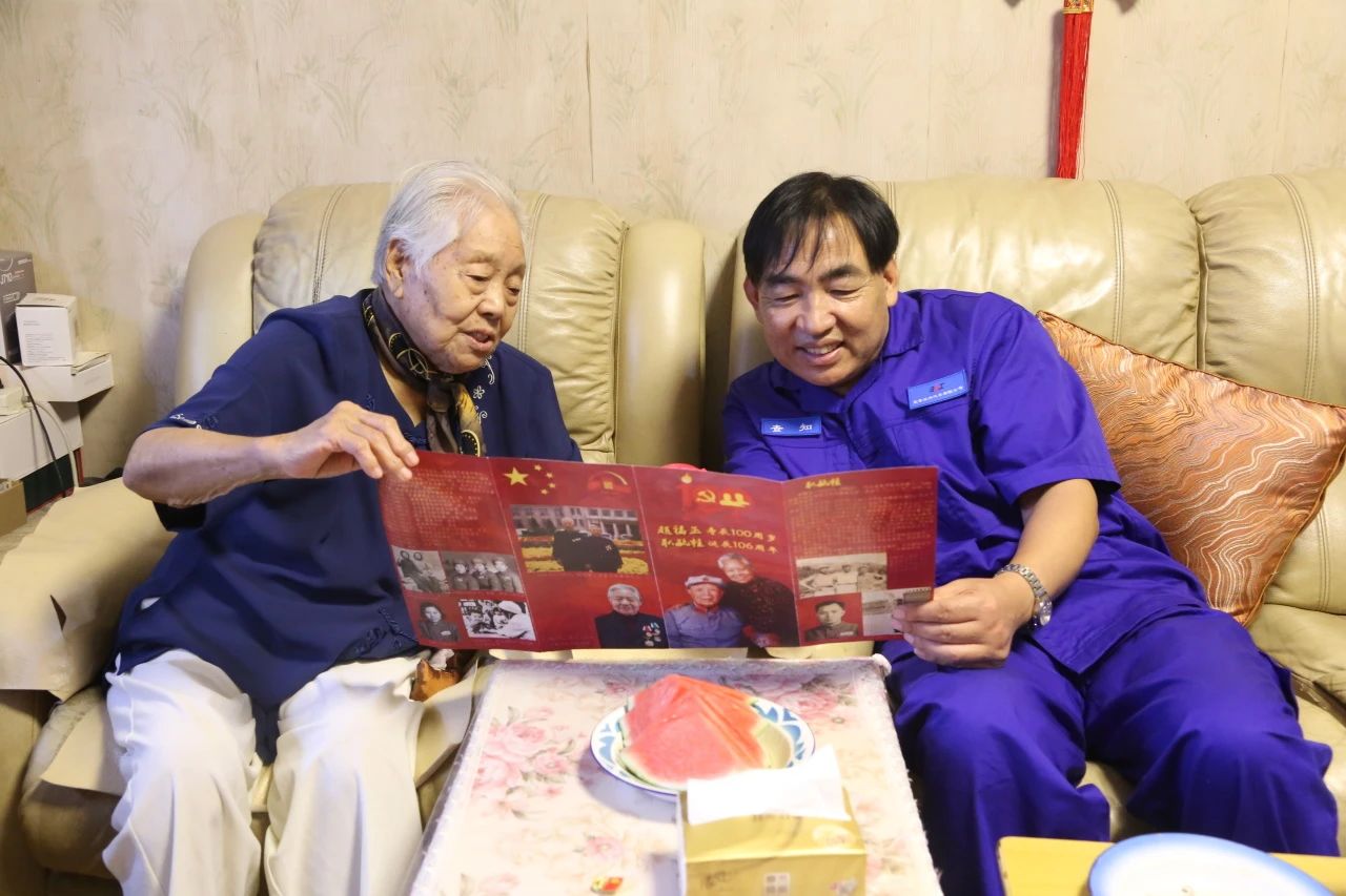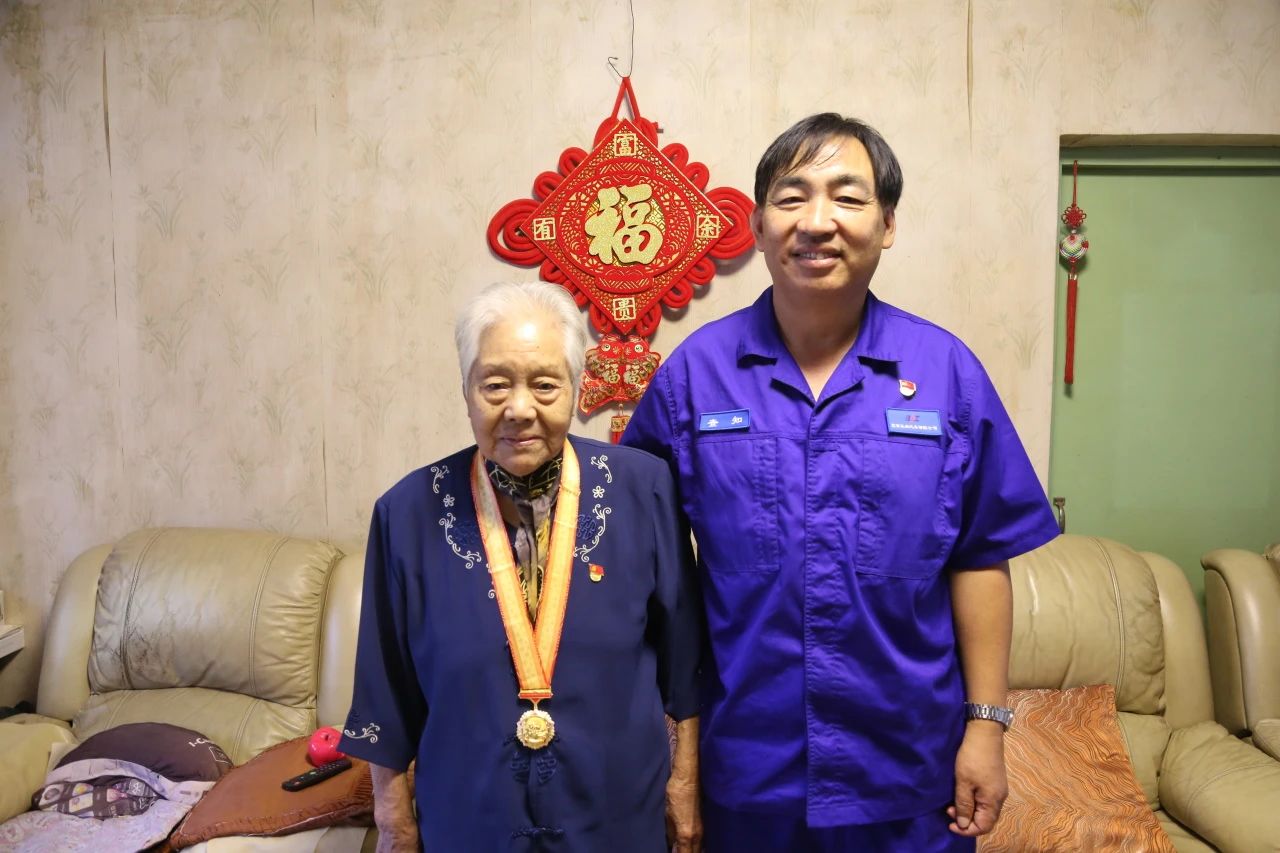 在趙福玉家中,查知親手將紀念章送到老干部手中,并和老人促膝交談,詳細詢問她的生活起居和身體狀況,認真傾聽老同志回憶烽火歲月的經歷,以及對公司發(fā)展歷程的感悟,對如今幸福生活的感想。